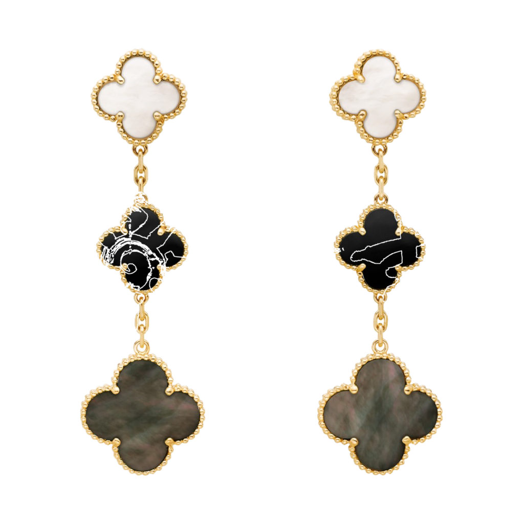 3モチーフ、18K イエローゴールド, オニキス, マザー オブ パール