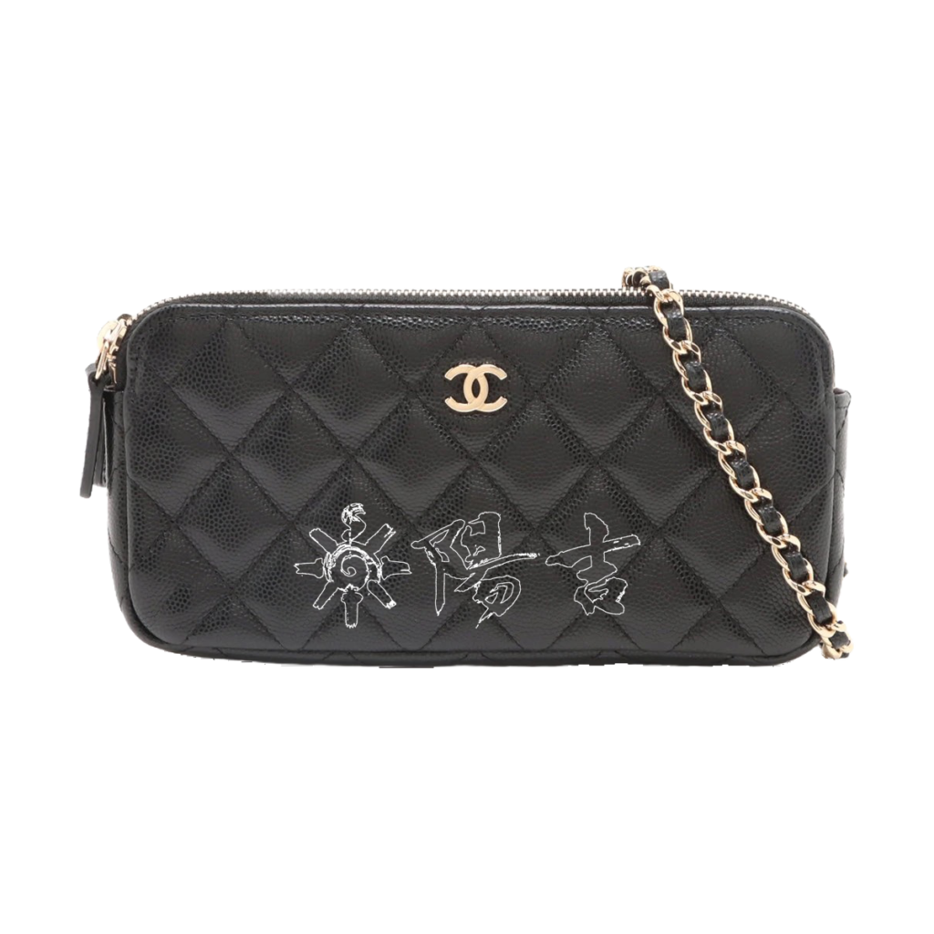 色:ブラック 素材:キャビアスキン 金具:ゴールド